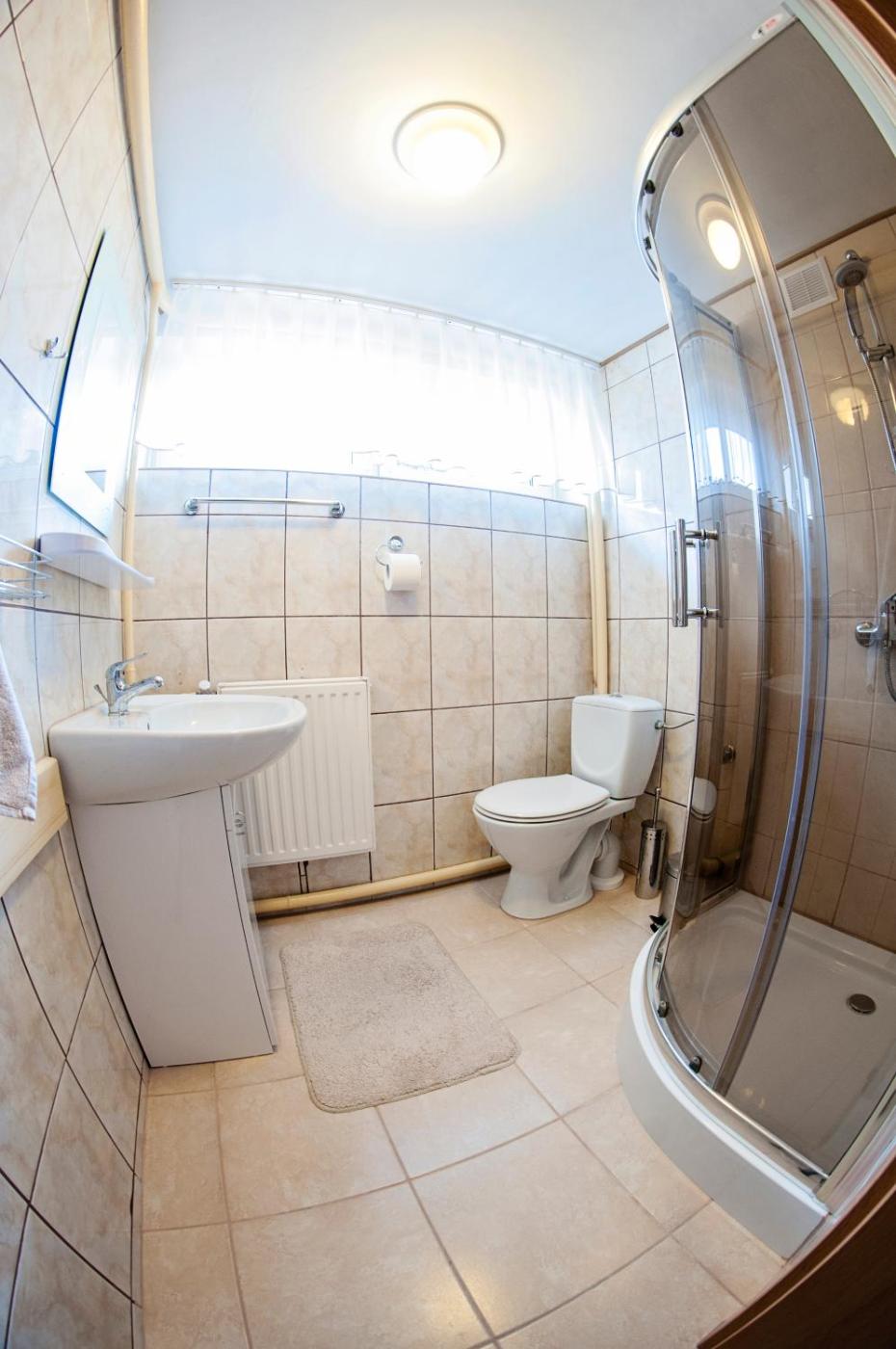 Pokój trzyosobowy. The pool with a view is a top feature of this triple room. Guests can make meals in the fully equipped kitchenette that has a refrigerator, kitchenware and an electric kettle. This triple room is comprised of a flat-screen TV with satellite channels, a private bathroom as well as an outdoor dining area. The unit has 2 beds. Pokój Trzyosobowy - 3 osobowy. Powierzchnia pokoju ok.: 25 mkw. ;