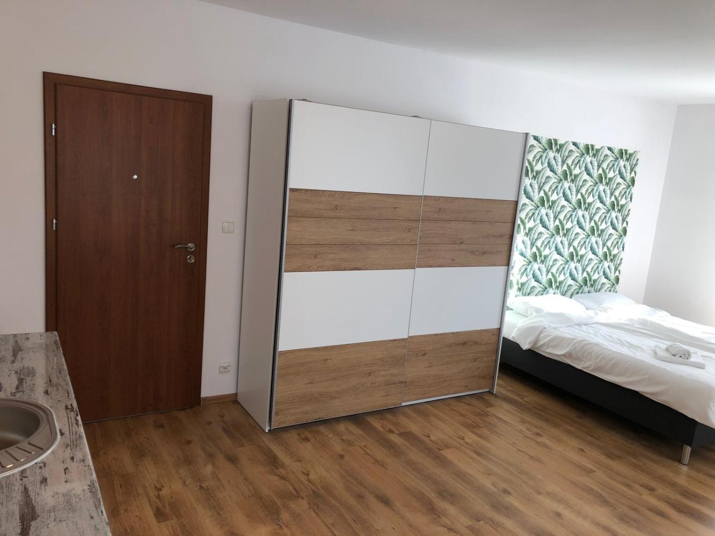 Apartament typu studio. This apartment consists of 1 living room, 1 separate bedroom and 1 bathroom with a shower and free toiletries. Guests can make meals in the fully equipped kitchenette that features a stovetop, a refrigerator and kitchenware. The apartment provides a tea and coffee maker, a seating area, a dining area, a flat-screen TV with cable channels, as well as garden views. The unit offers 2 beds. Apartament - 3 osobowy. Powierzchnia pokoju ok.: 35 mkw. ;