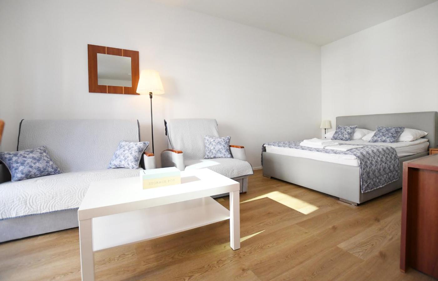Apartament z balkonem. Featuring 1 bedroom, this apartment offers 1 bathroom with a bath, a seating area and terraceyou can relax. The well-fitted kitchen features a stovetop, a refrigerator, kitchenware and a microwave. The apartment provides a flat-screen TV, a washing machine, soundproof walls, a tea and coffee maker as well as a quiet street view. The unit has 2 beds. Apartament - 4 osobowy. Powierzchnia pokoju ok.: 36 mkw.