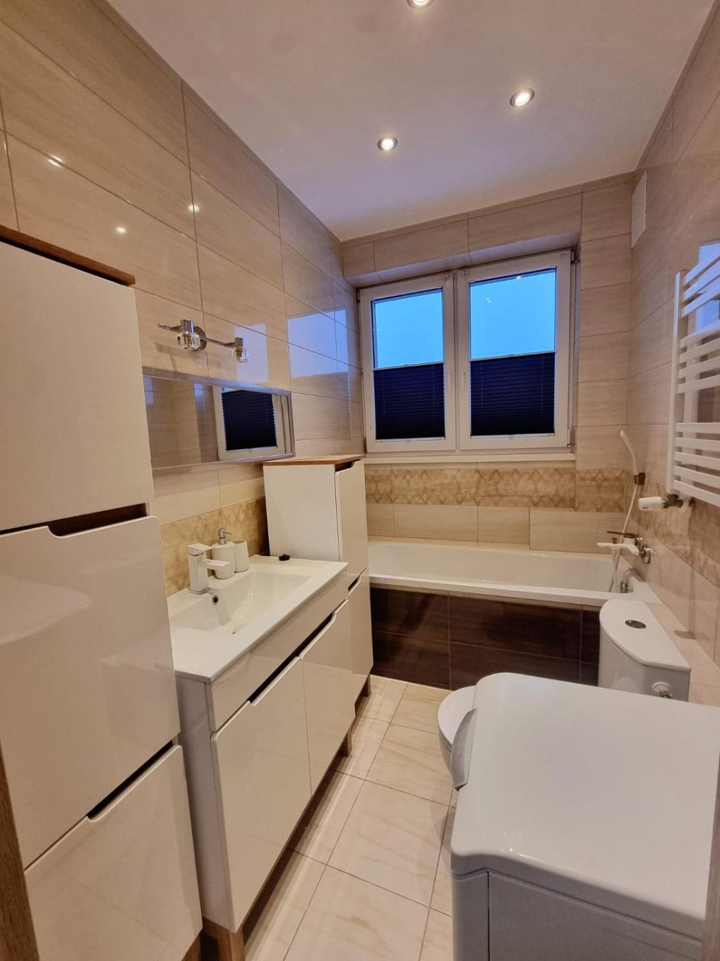 Apartament z 1 sypialnią. The apartments kitchen, which has a refrigerator and an electric kettle, is available for cooking and storing food. The apartment offers a washing machine. The unit has 1 bed. Apartament - 2 osobowy. Powierzchnia pokoju ok.: 26 mkw.