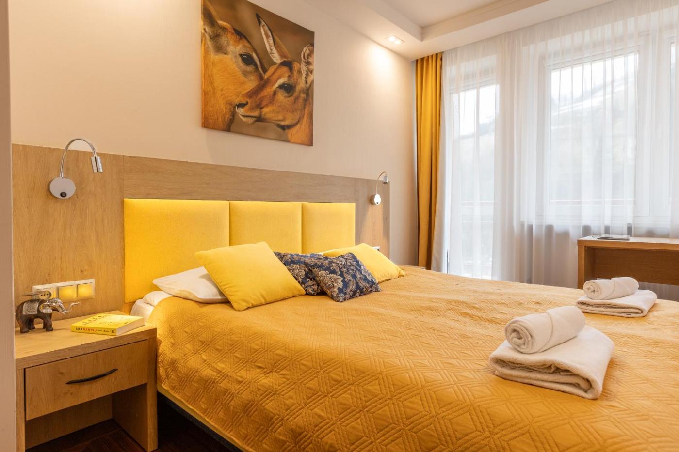 Pokój typu Deluxe. Providing free toiletries and bathrobes, this double room includes a private bathroom with a shower and a hairdryer. The spacious double room provides a tea and coffee maker, a wardrobe, heating, a flat-screen TV, as well as mountain views. Pokój Dwuosobowy - 2 osobowy. Powierzchnia pokoju ok.: 28 mkw. ;