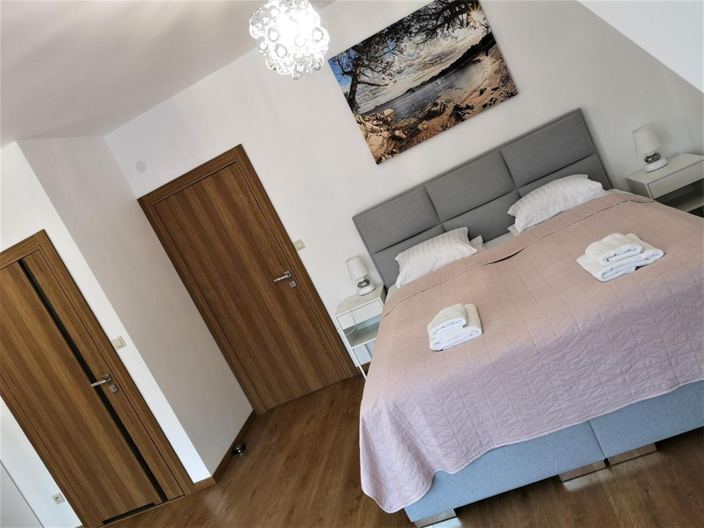 Apartament z 3 sypialniami. This apartments standout feature is the fireplace. This spacious apartment includes 1 living room, 3 separate bedrooms and 3 bathrooms with a shower and free toiletries. Guests will find a stovetop, a refrigerator, a dishwasher and kitchenware in the fully equipped kitchen. The apartment also features a barbecue. Boasting a terrace with lake views, this apartment also offers a washing machine and a flat-screen TV with streaming services. The unit has 5 beds. Apartament - 6 osobowy. Powierzchnia pokoju ok.: 160 mkw.