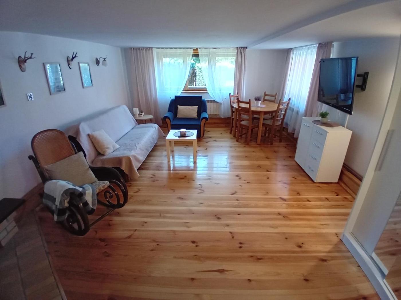 Dom z 1 sypialnią. The fireplace is the standout feature of this holiday home. Boasting a private entrance, this holiday home comes with 1 living room, 1 separate bedroom and 1 bathroom with a bath and a shower. Guests will find a refrigerator, kitchenware, an oven and a microwave in the kitchen. The holiday home also includes a barbecue. The holiday home features a washing machine, a tea and coffee maker, a dining area, a flat-screen TV with satellite channels, as well as garden views. The unit has 4 beds. Dom wakacyjny - 5 osobowy. Powierzchnia pokoju ok.: 70 mkw.