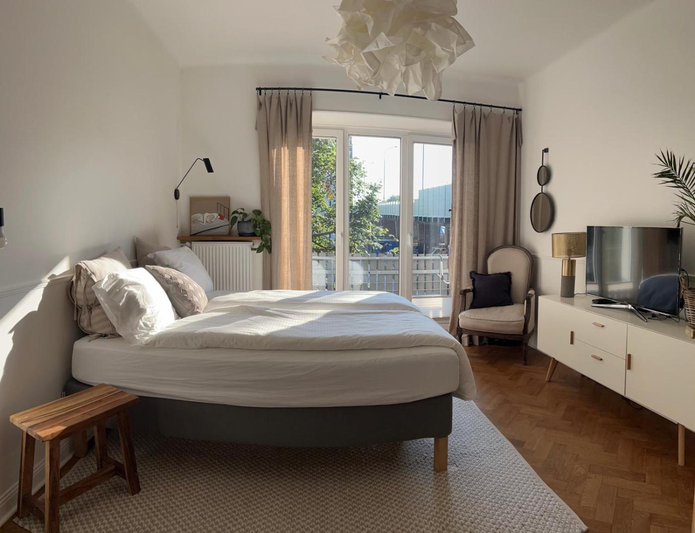 W apartamencie zapewniono kilka sypialni (2), łazienkę (1), pościel, ręczniki, jadalnię oraz kuchnię z pełnym wyposażeniem. Do dyspozycji Gości jest także telewizor z płaskim ekranem oraz balkon z widokiem na ogród.