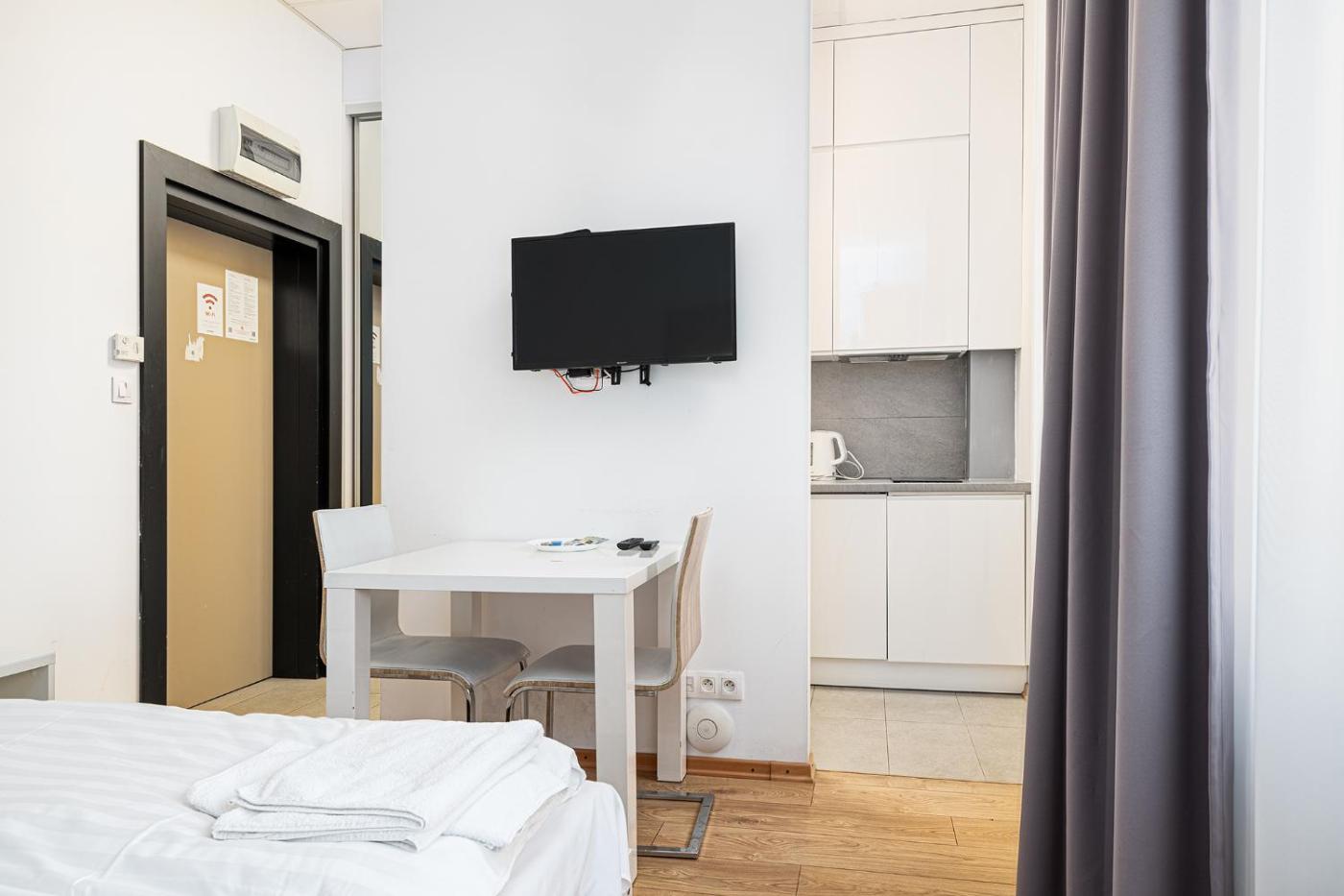 Studio z łóżkiem typu queen-size. The fully equipped kitchenette features a stovetop, a refrigerator, a dishwasher and kitchenware. The studio offers air conditioning, a private entrance, as well as a private bathroom featuring a shower and a hairdryer. The unit offers 1 bed. Studio - 2 osobowy. Powierzchnia pokoju ok.: 21 mkw.