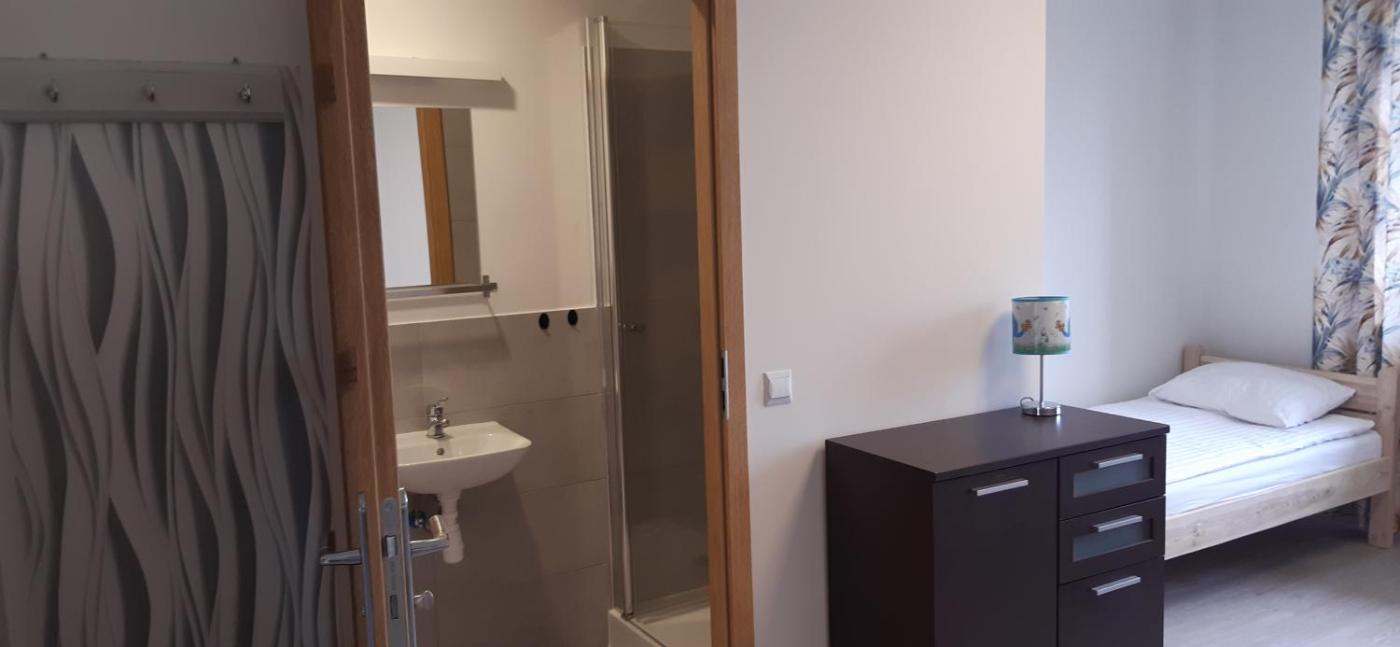 Pokój Dwuosobowy przystosowany dla osób niepełnosprawnych. The double room features a dining area and heating, as well as a private bathroom boasting a walk-in shower. The unit has 2 beds. Pokój Dwuosobowy - 2 osobowy. Powierzchnia pokoju ok.: 11 mkw.